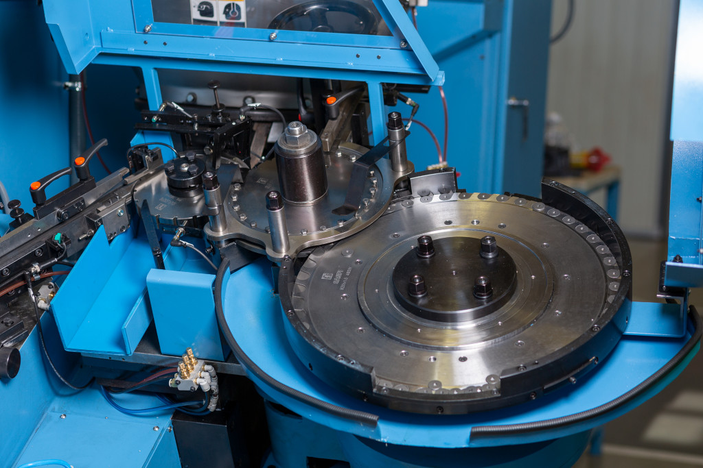 This machine incorporates a system for inserting washers into the parts before rolling.