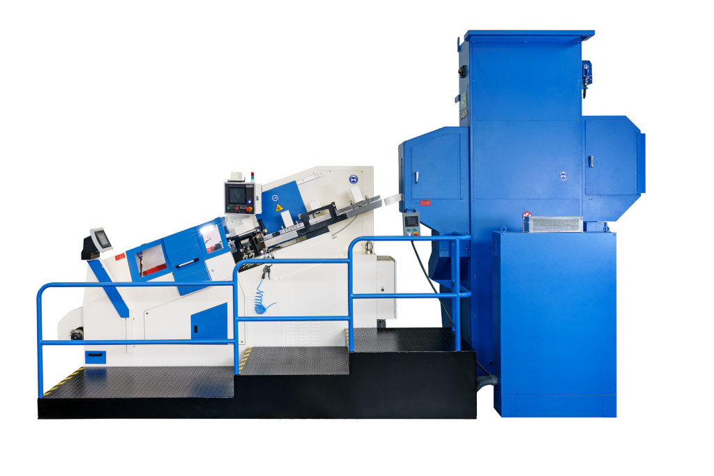Saspi pointing machine in-line for chamfering, drilling and threading in a single feed.